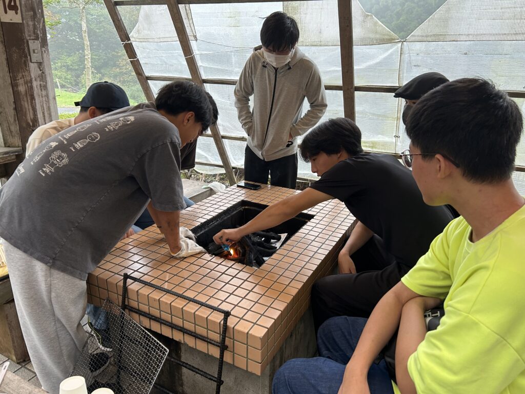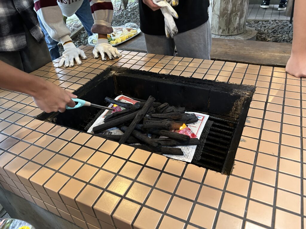 「ビラデスト今津」のBBQ場で行いました。火起こしからチャレンジし、実習キャリアの授業でアウトドアを選択している生徒たちが、慣れた手つきで次々と火を起こしていました🔥🔥