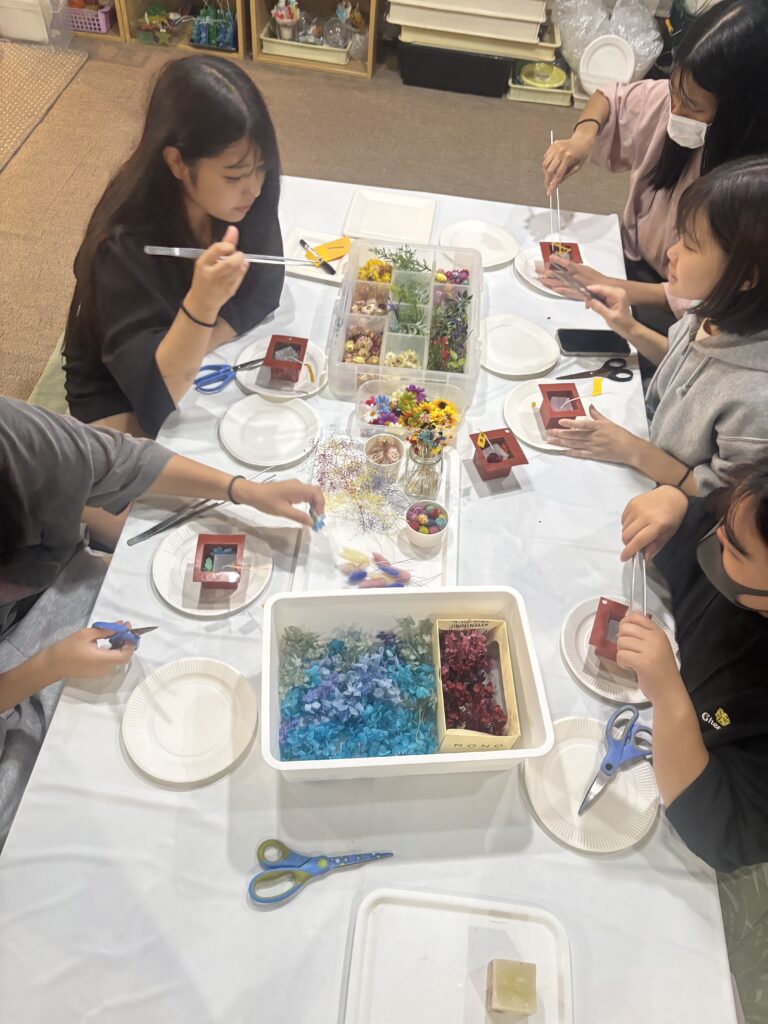 ボタニカルキャンドルでは、自分の作りたい色の花を集め、丁寧に蝋を流し入れ、思い思いのアロマを選び、自分専用のアロマキャンドルを作りました🕯️