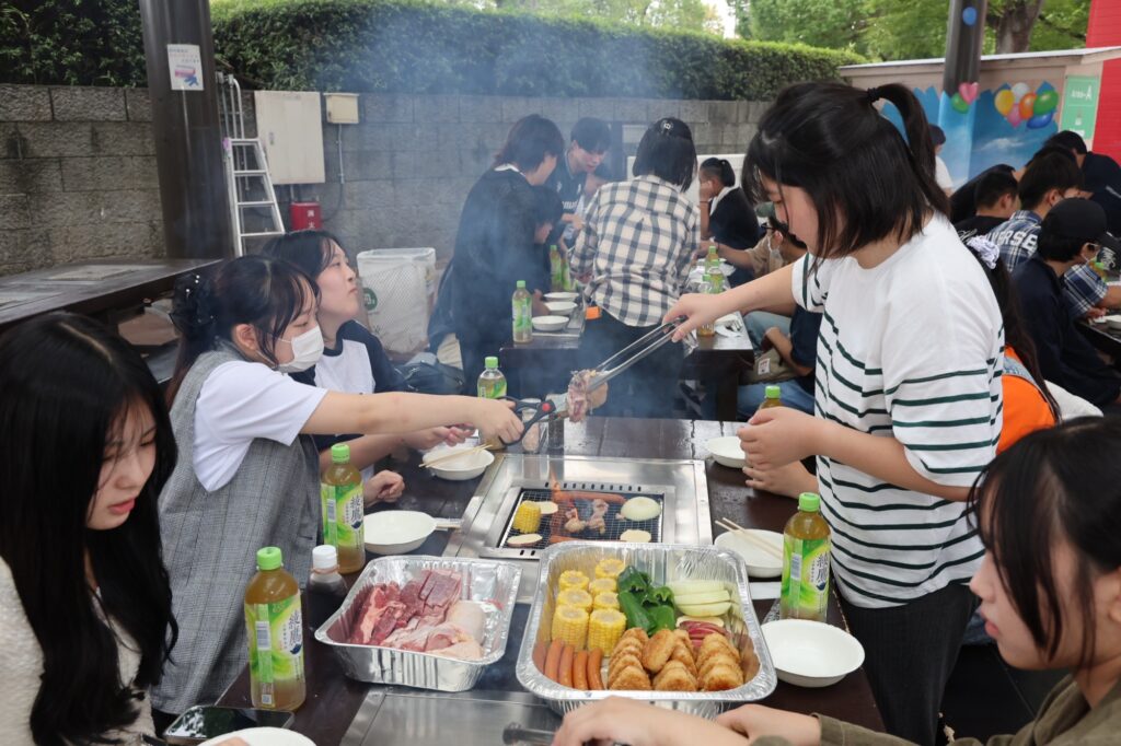 お昼は、全員で万博公園内に移動しバーベキューを行いました。🍖🔥「普段、食事の手伝いはしない!」と言っていた生徒も肉を焼く煙や火加減に苦労しながらもグループで楽しくおなか一杯にバーベキューを堪能しました❗